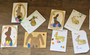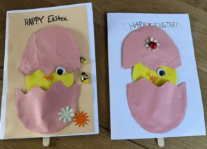Nous avons décidé à notre tour de répondre avec des cartes pour nous présenter en anglais sur le thème « Happy Easter » .
